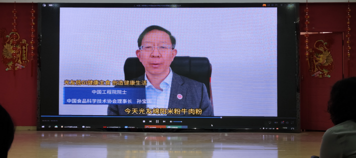 中國(guó)工程院院士、中國(guó)食品科學(xué)技術(shù)協(xié)會(huì)理事長(zhǎng)孫寶國(guó)發(fā)來視頻祝賀《光友低GI健康主食 創(chuàng)造健康生活》:“2023年6月我和其他食品科學(xué)家一起應(yīng)邀到光友薯業(yè)參觀考察及成果評(píng)價(jià),看見光友薯業(yè)32年專注薯類健康方便主食產(chǎn)業(yè),我們都很感動(dòng)。光友薯類方便米粉是由鄒光友為課題負(fù)責(zé)人,研發(fā)完成國(guó)家十三五薯類方便主食中的一項(xiàng)重大成果,我多次組織技術(shù)成果評(píng)價(jià),均評(píng)價(jià)為國(guó)際領(lǐng)先水平。今天,光友綿陽(yáng)米粉牛肉米粉獲得低GI健康食品認(rèn)證,并召開新聞發(fā)布會(huì)向全球推廣,這是食品行業(yè)的一大喜訊,向光友薯業(yè)表示祝賀!”。