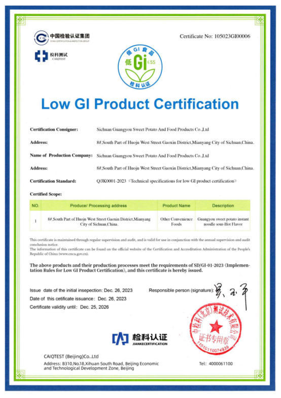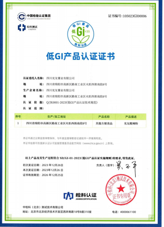 光友薯業(yè)對此次酸辣粉獲得低GI認證表示非常榮幸和自豪,光友薯業(yè)表示,將繼續(xù)秉持“健康、美味、創(chuàng)新”的理念,不斷推出更多符合消費者需求的健康食品,為人們的健康生活貢獻更多力量。