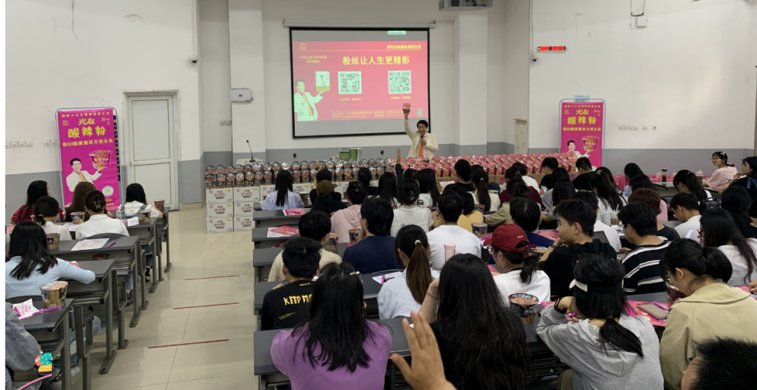 演講過(guò)程中,光友薯業(yè)董事長(zhǎng)強(qiáng)調(diào),他與光友薯業(yè)始終不忘初心,從未停止過(guò)改變紅薯命運(yùn)的偉大愿景,光友薯業(yè)在32年間,共進(jìn)行了六次具有歷史突破性的粉絲革命,先后斬獲國(guó)內(nèi)外多項(xiàng)榮譽(yù)與專(zhuān)利,并在不久前全新發(fā)明了全球領(lǐng)先的低GI健康薯類(lèi)主食——光友綿陽(yáng)米粉和光友酸辣粉,科學(xué)健康和方便美味完美相融,該類(lèi)粉絲一經(jīng)亮相,便立即受到了業(yè)內(nèi)外的認(rèn)可與追捧。現(xiàn)場(chǎng)同學(xué)食指大動(dòng),也對(duì)光友這個(gè)國(guó)貨老品牌有了全新的認(rèn)知。