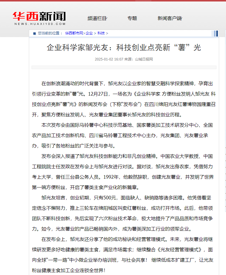 轉(zhuǎn)載華西新聞——企業(yè)科學(xué)家鄒光友:科技創(chuàng)業(yè)點亮新“薯”光