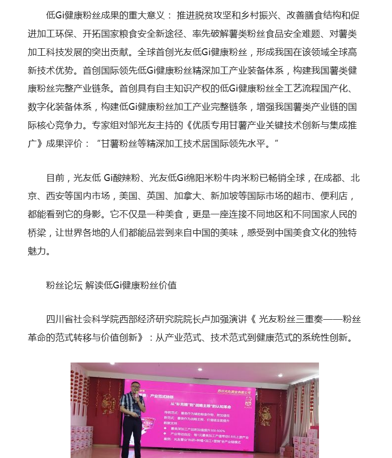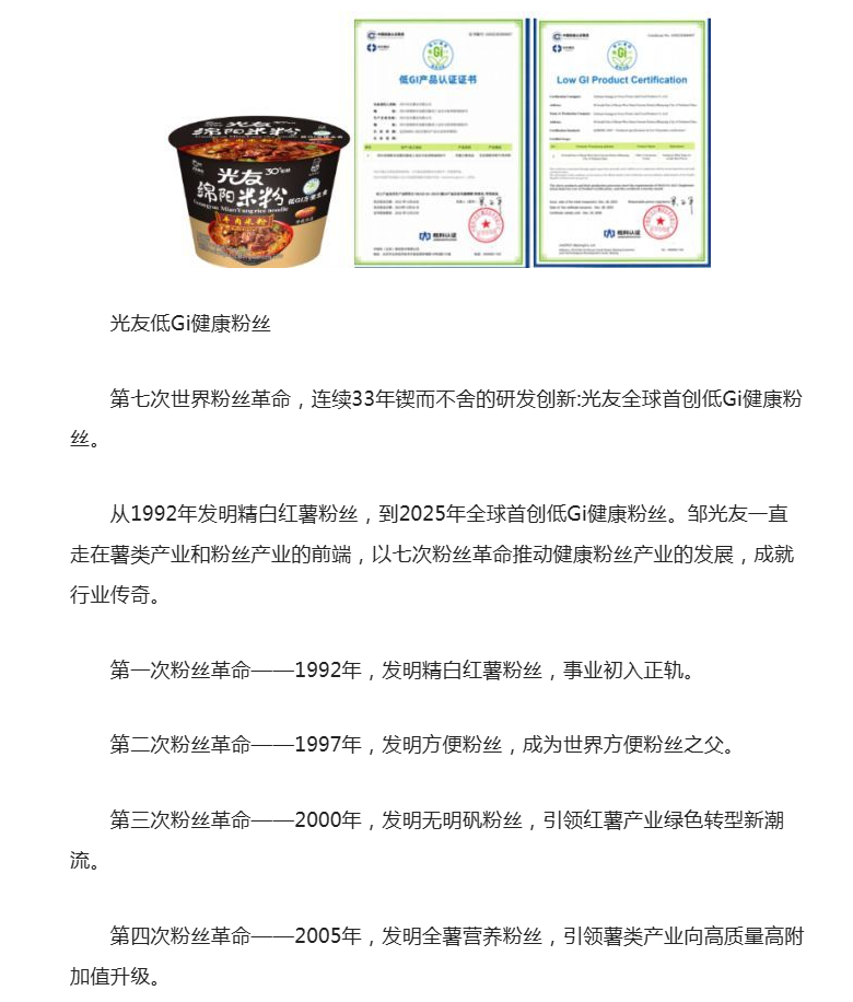 第七次世界粉絲革命——光友全球首創(chuàng)低Gi健康粉絲